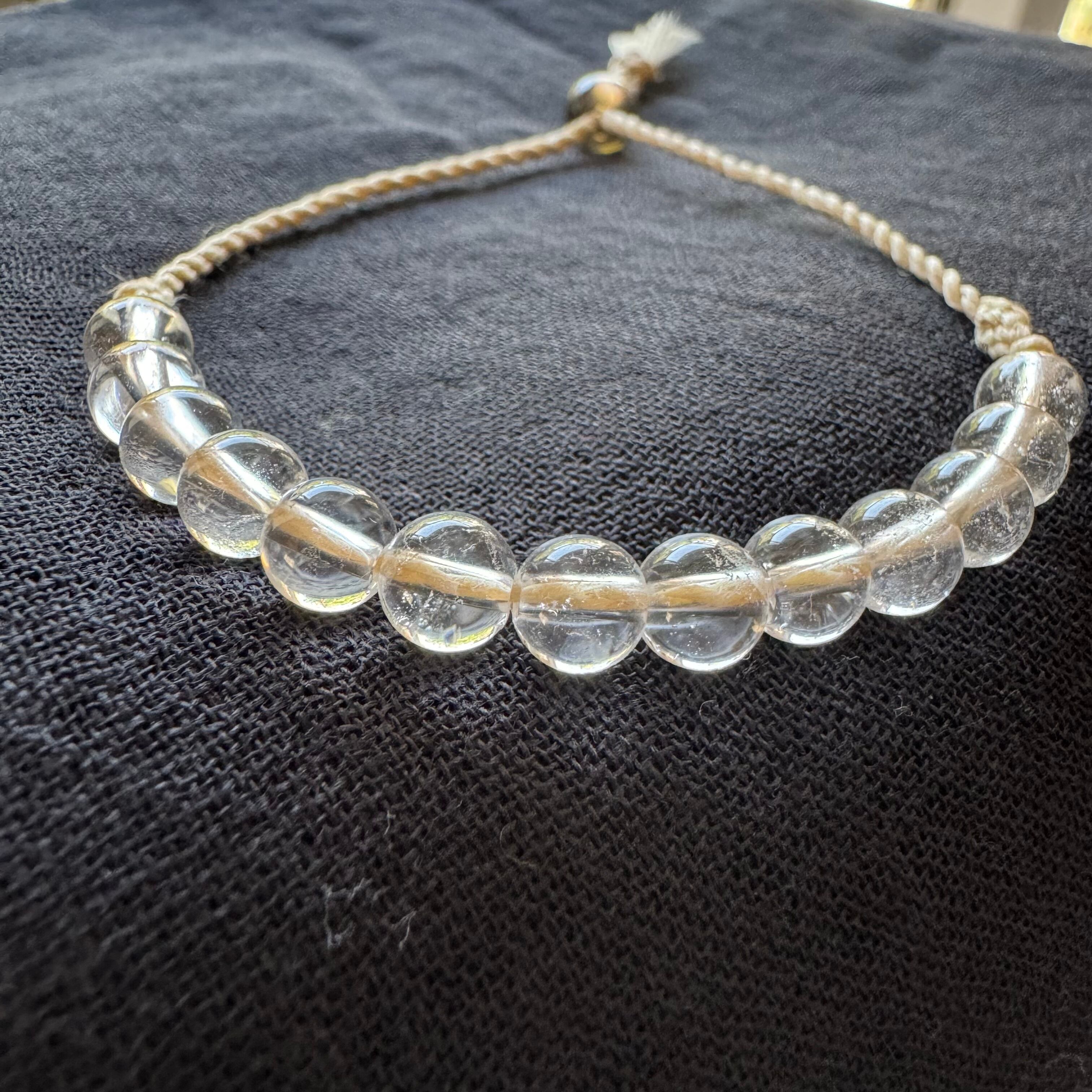 稀少なブラジル産アイスクォーツ(天然水晶)と日本燦々特等級精麻をむすんだブレスレットです。